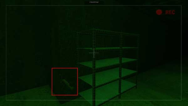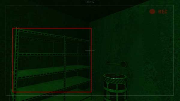 2、当你前进时遇到这种架子需要查看是否有道具,想要拿架子上的东西就讲十字准星对准物品即可获取,点击获取桶子左上方的东西。