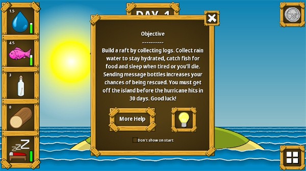 3、在游戏的第一天和第二天,玩家可以获得水和鱼,这些资源对于初期生存至关重要;