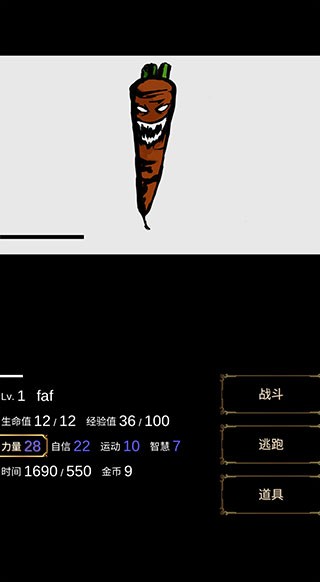 2、左下角是自己的等级、生命值、时间、金币以及经验值等信息,你会遇到很多随机事件,可以选择战斗或者逃跑。