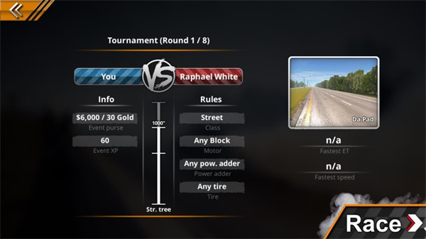 5、进入之后还要选择一个地图进行挑战,选择完点击race;