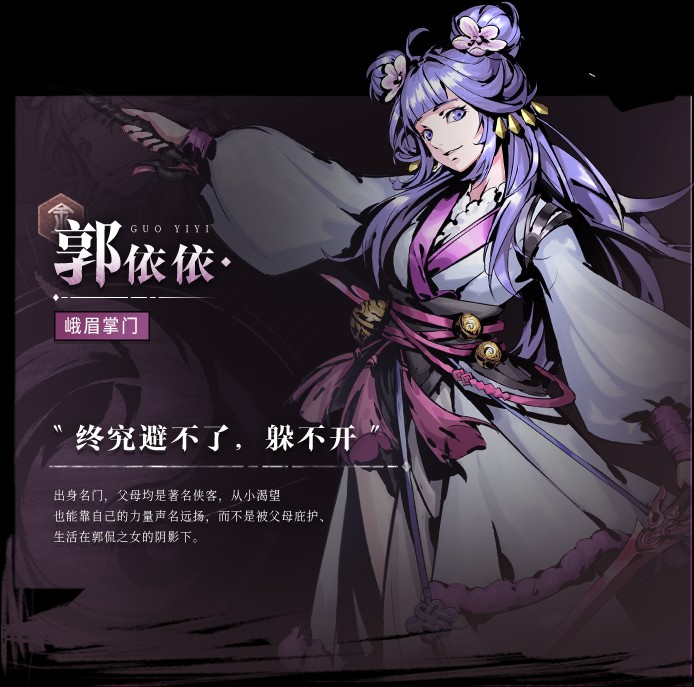 出身名门,父母均是著名侠客,从小渴望也能靠自己的力量声名运扬,而不是被父母庇护生活在郭侃之女的阴影下。