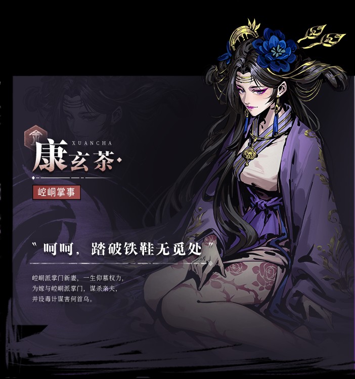 崆峒派掌门新妻,一生仰慕权力,为嫁与崆峒派掌门,谋杀亲夫,并设毒计谋害何首乌。