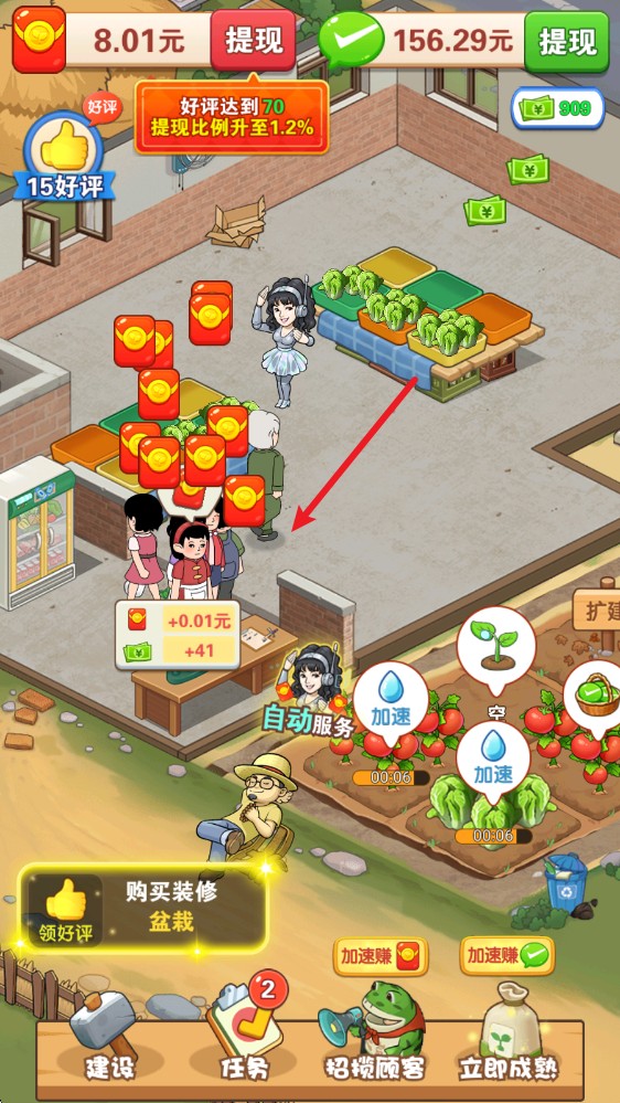 不断地完成各种任务,可以帮你去进行菜市场的升级。