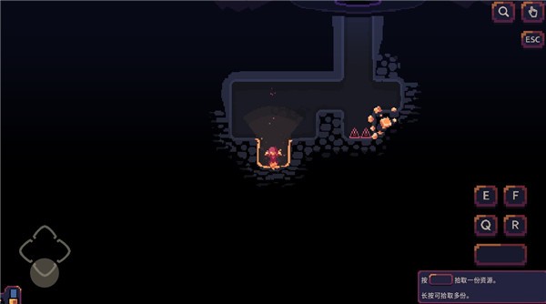 5、挖到矿后,点击此键可以拾取,然后控制角色将矿石拉上去,需要注意的是你拉的矿石越多,你的移动速度也会越慢
