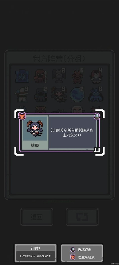 魔王终局内置mod菜单最新版是一款非常好玩的策略自走棋玩法的游戏,玩家们能够在游戏中体验到非常原汁原味的玩法内容。你需要根据不同的情况去进行安排,在游戏当中扮演魔王去完成一系列的战斗。游戏中的操作都是比较简单的,战斗都是去挂机进行的。你能在这里体验到非常不错的体验,享受独特的策略对战。