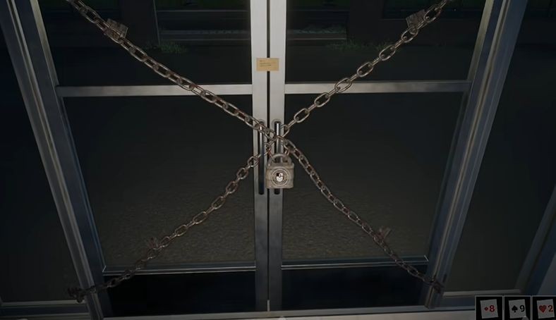 1、正门结局跟着任务找到卡片后来到保安室,输入密码获得大门钥匙