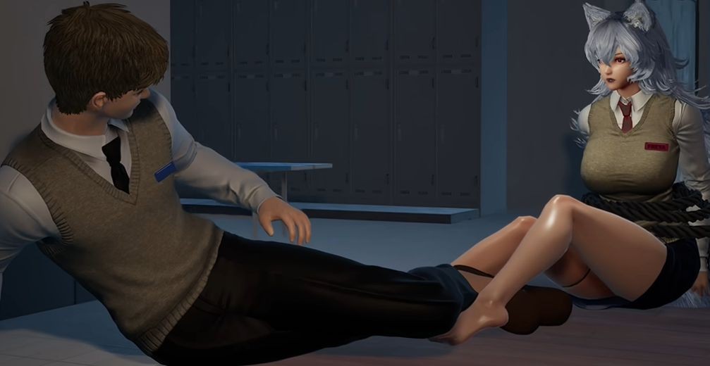 触发结局CG,狗哨能让芙蕾雅变乖,但男主不忍心留芙蕾雅一个人,最终选择和芙蕾雅一起离开学校