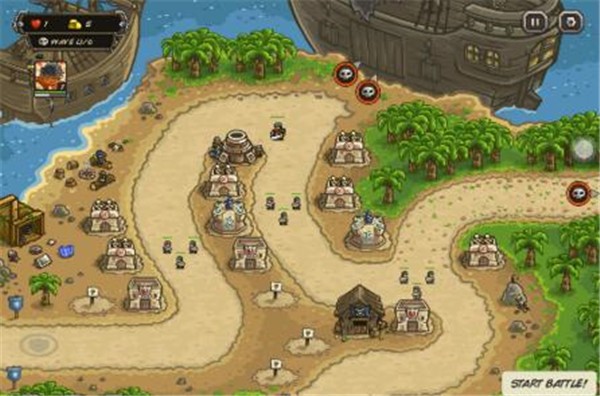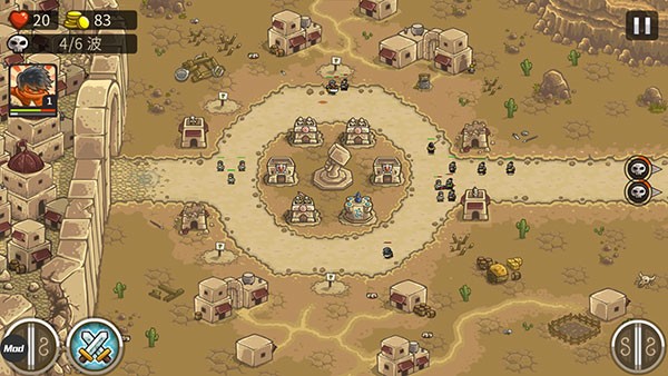 攻略:中央先造3个炸弹塔,三角排列,增援冷却即用,个别漏网的别紧张,后部有一个NPC箭塔会帮你解决,有钱了就在中央补步兵塔,先补上面或者下面,然后是后面,配合增援兵力就轻松守住了,有钱了就酌情补个炸弹塔,最后1小波敌人需要用增援兵力隔断阻挡一下即可