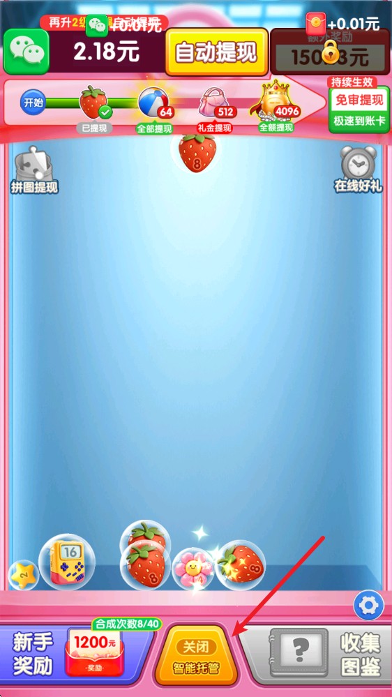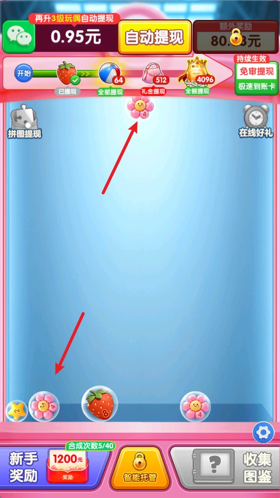 3、合成出4级玩偶后,游戏将解锁智能托管功能,该功能能够帮助玩家自动完成合成操作。