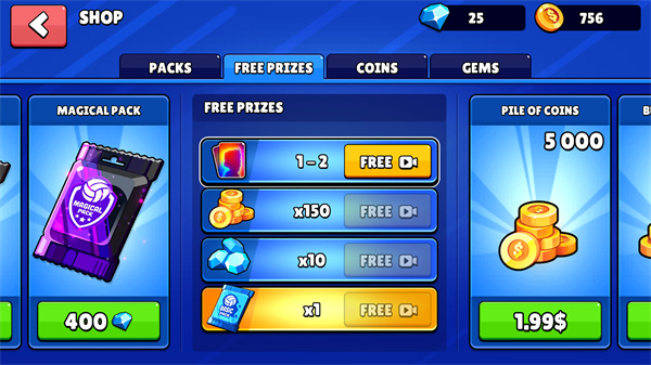 释义为免费奖品,玩家点击可以跳转至查看游戏内的免费商品活动,可以在此界面获得免费道具。