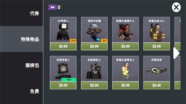 1、下载并打开进入布娃娃沙盒游乐场3D游戏主界面,可看到提供有沙盒模式、【SKIBIDI DJ】、【TITAN TVMAN】和【TITAN SPEAKERMAN】四种游戏模式可选择