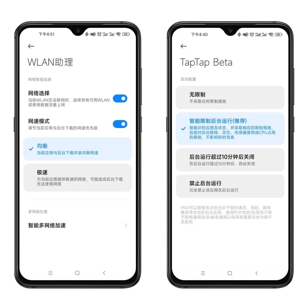 2. 已开启后台运行权限,但是网络设置中以当前使用的App为主,后台软件基本不占用网速