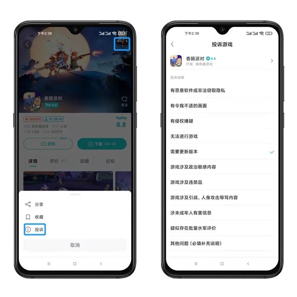 TapTap游戏安装包皆是由开发者上传即官服,若你在游戏内遇到提示游戏版本落后,且TapTap未提供更新时,可在对应游戏主界面右上角选择两点-投诉游戏-需要更新版本,投诉后相关同事收到会进行核实确认,确认版本落后则会联系开发者进行更新~