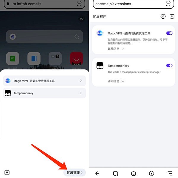 「狐猴浏览器」是一款基于Chrome内核开发的安卓平台手机浏览器,功能强大,打开网页速度更快!重点是他支持安装扩展插件,可扩展性强!Infinity New Tab、Tampermonkey、Adblock Plus等成千上万个扩展在狐猴浏览器上也同样可以使用。下面小编给大家带来了狐猴浏览器安装插件的具体方法: