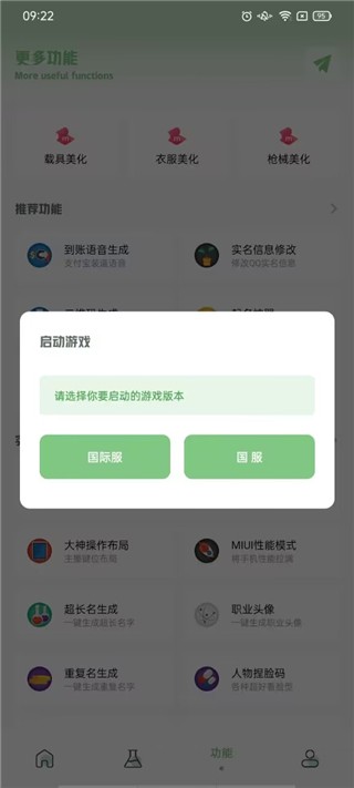 2、支持国服、国际服画质、音频、比例功能,请注意每一次进入游戏都需要修改;