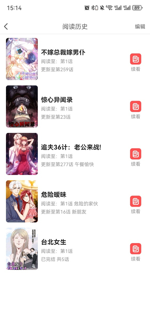 6、如果忘记了当时的漫画可在我的预览记录中查看或直接续看。