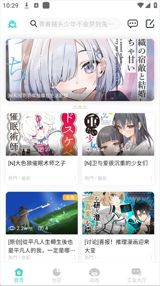 打开LK轻之国度App后默认进入首页,顶部搜索栏可直接搜索作品。