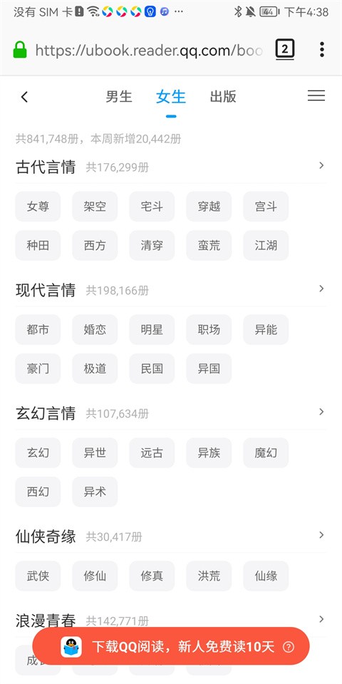 4、然后选择你想看的小说进入,点击下方打开QQ阅读进行下载;